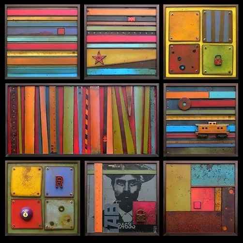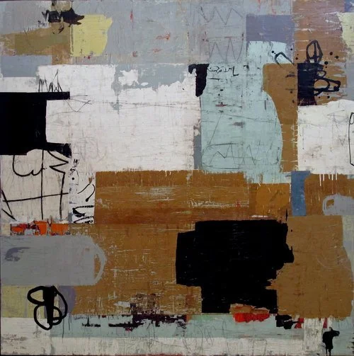 The Abstraction by Design method is the process of exploring collage and painting techniques by multi-layering the mediums of paper and paint on panels.