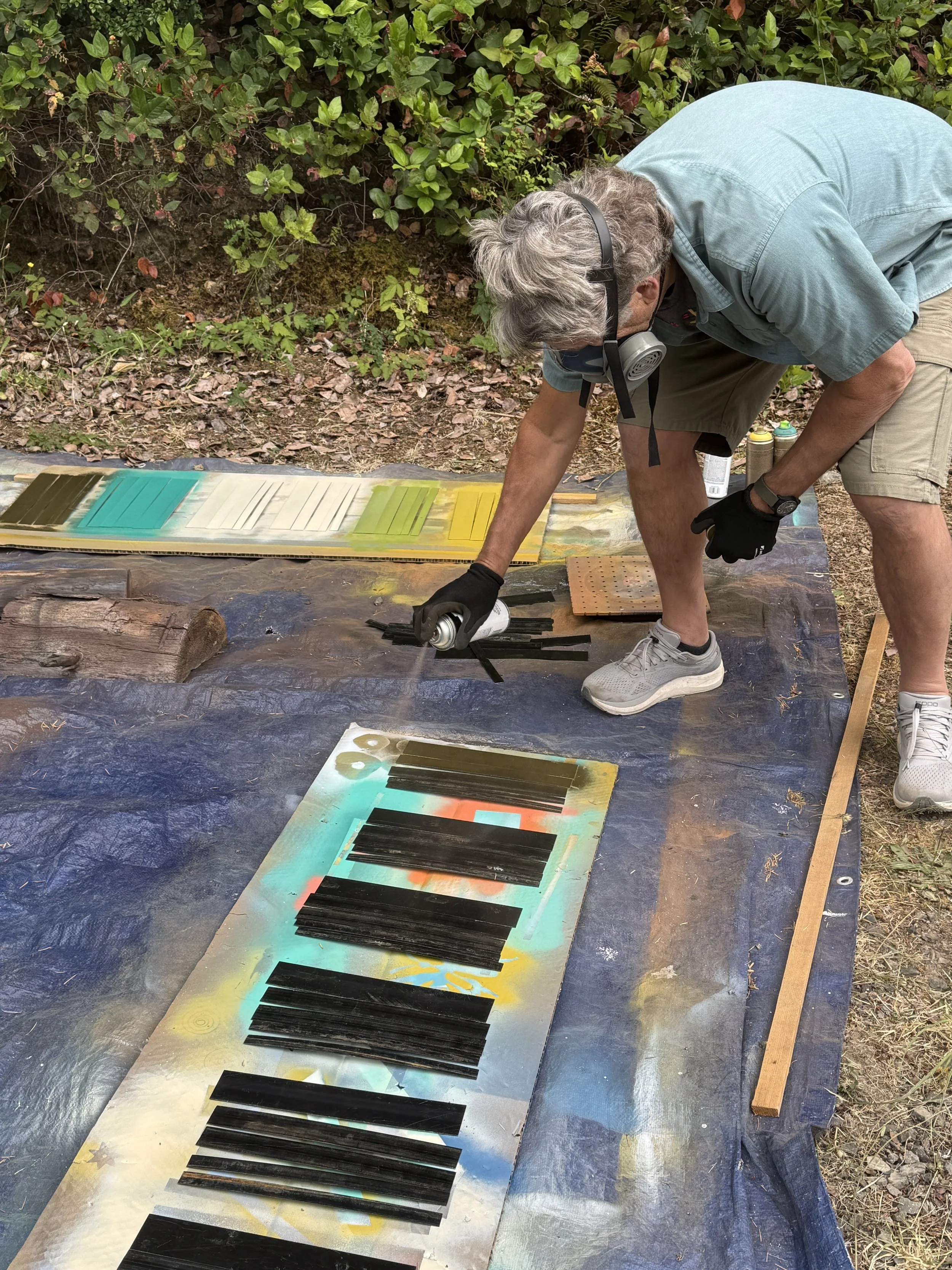 Arunas is already prepping the banding that will rust over the winter. The painted metal colors will be chosen and painted by each artist. We use spray paint to accomplish this.