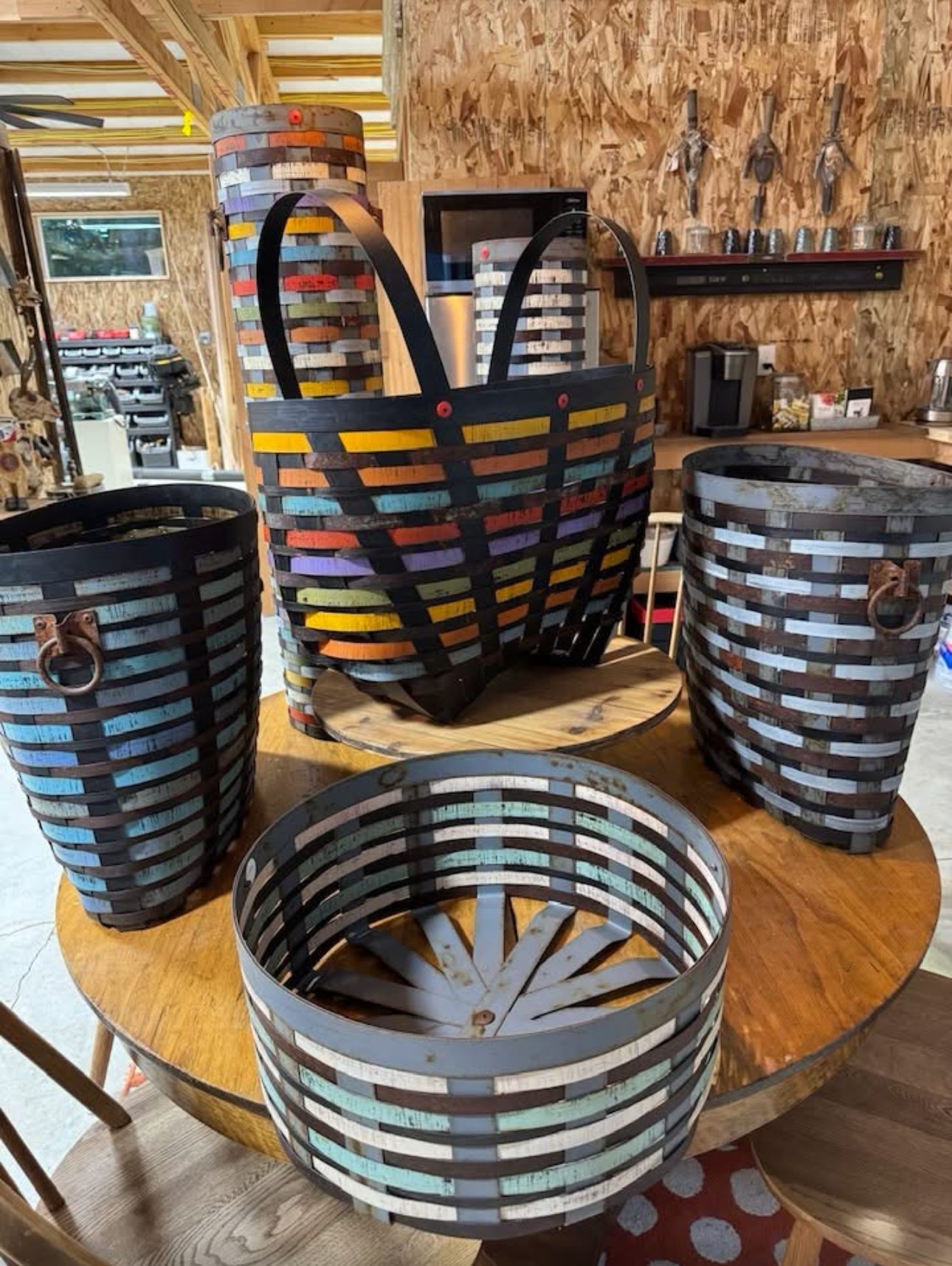 Join artist Arunas Oslapas of Red Rivet Studios for his first ever workshop on how he makes his beautiful metal baskets. In this class you will make one as pictured right and another smaller basket that you can use for utensils or as a vase.