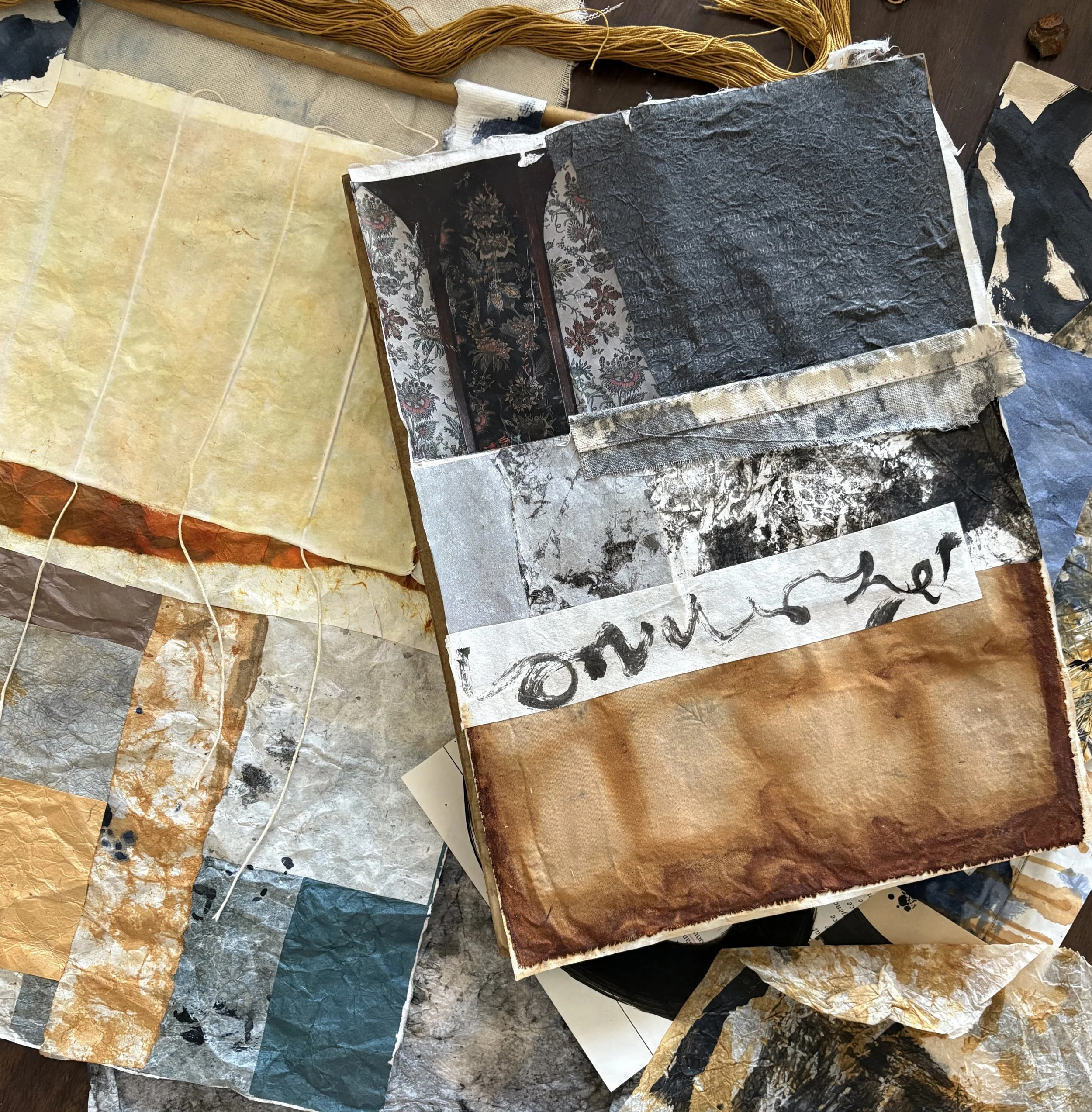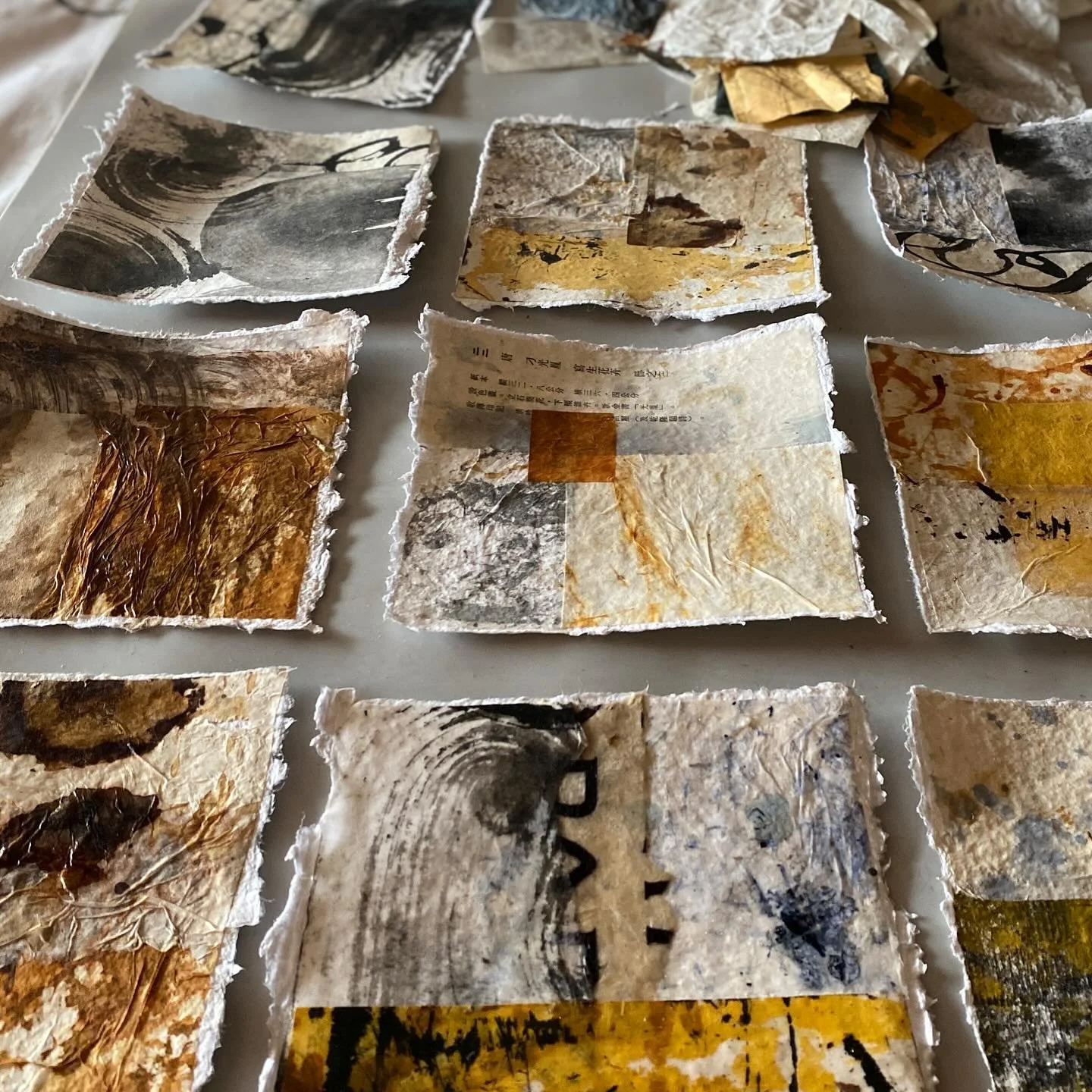 Rather than striving for perfection or control, we’ll lean into the mystery—allowing fragments to find their place, and compositions to take shape through both chance and intention. Along the way, you may create small samplers to test ideas, alongside larger collage works that carry depth, texture, and resonance. This is the heart of material alchemy: not simply technique, but transformation.
