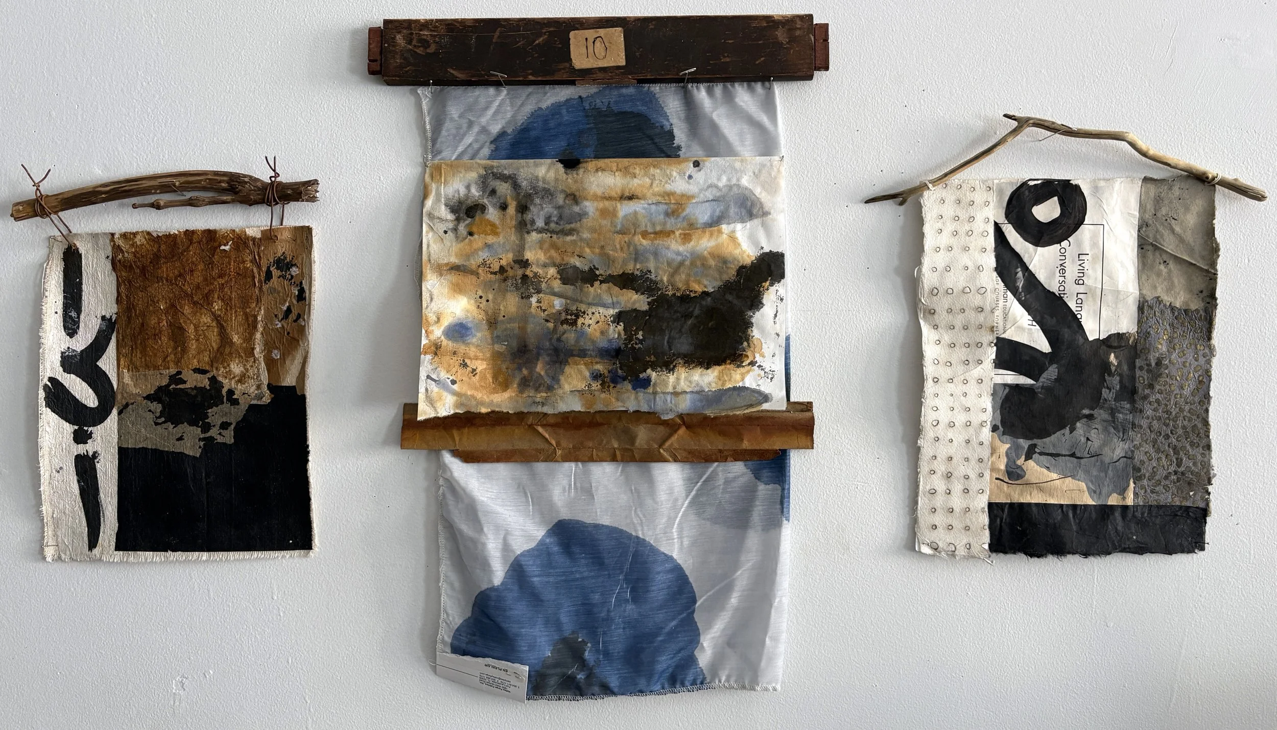 Finishing collage works on panel and in free-flowing banner style presentation.